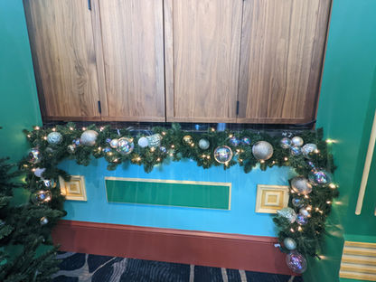 I worked with decorating all the garland for this Bubly Bar project. I used the assigned kits following the desired color scheme to match the work order and design documents as much as possible. A lot of this garland was meant to be very close to guest reach and be prepared to be constantly interacted with so I had a lot of the ornaments double attached to each other and to the wire framing of the garland for extra security.